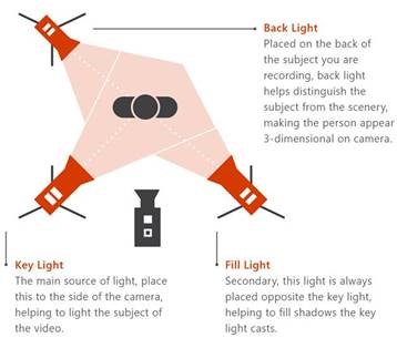 Use three lights to illuminate your subject — a key light, a fill light, and a back light to provide good depth.