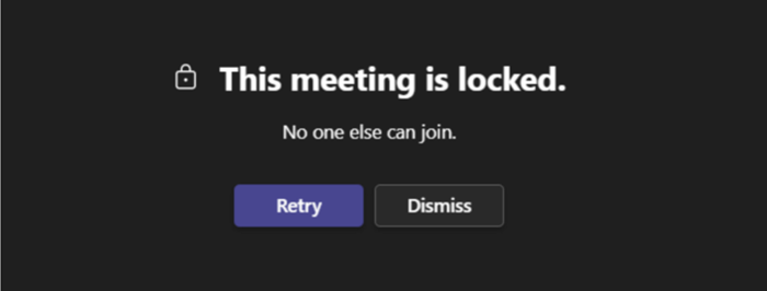 In Teams, you might receive a message about why you're unable to enter a meeting. Here are the different messages you might encounter and how to resolve them.