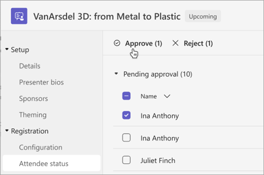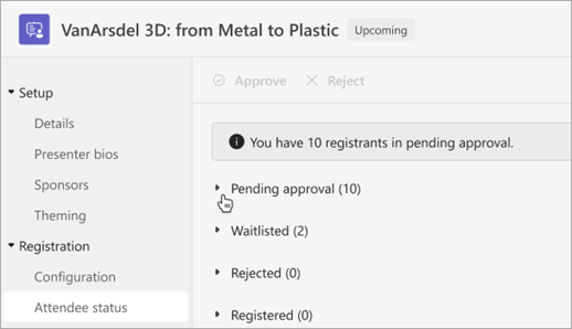 Note: Reviewing registration requests is available as part of Teams Premium, an add-on license that provides additional features to make Teams meetings more personalized, intelligent, and secure. To get access to Teams Premium, contact your IT admin.