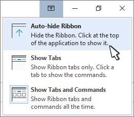 Show tabs only shows only the ribbon tabs, so you see more of your document, and you can still quickly switch among the tabs.