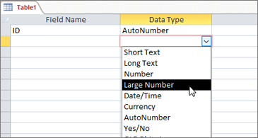 The Large Number data type stores a non-monetary, numeric value and is compatible with the SQL_BIGINT data type in ODBC. This data type efficiently calculates large numbers.