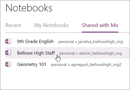 Select Shared with me to view notebooks others have created and shared with you.