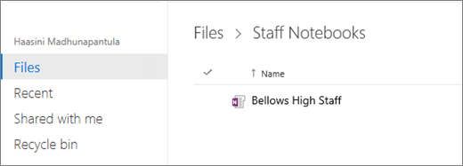 Select My files > Staff Notebooks to view notebooks you have created.