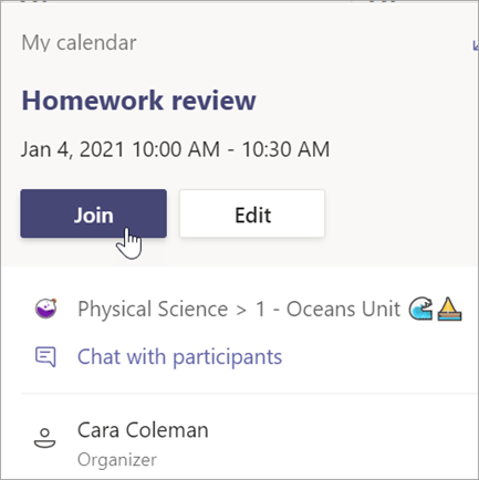 Use meetings in Teams to schedule virtual presentations and discussions for your whole class.