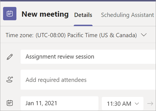 Give your meeting a title. Decide on a date and time. Add any additional details.